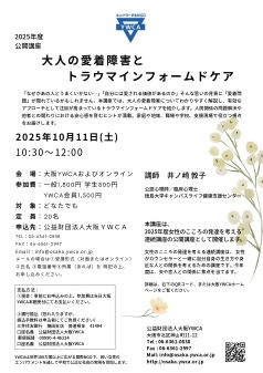 Email:info@osaka.ywca.or.jp メールの場合は@受講形式(対面またはオンライン)A氏名 B電話番号C所属(あれば)を明記の上、お申し込みください。
